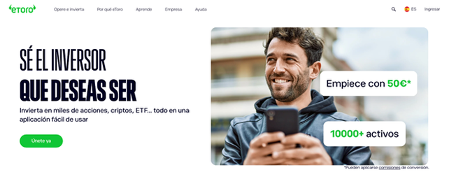 eToro es una plataforma de trading multiactivos que ofrece acceso a más de 6000 instrumentos, incluyendo acciones, ETF, divisas, materias primas, índices y criptomonedas. La plataforma es ampliamente conocida por su ecosistema de trading social, que permite a los usuarios seguir y copiar automáticamente a otros inversionistas a través de CopyTrader. El trading se realiza a través de aplicaciones web y móviles propias, con regulación en varias jurisdicciones, incluyendo CySEC, FCA y ASIC.