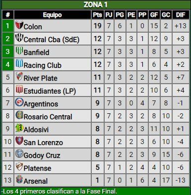 Así quedaron las posiciones en la zona de Colón