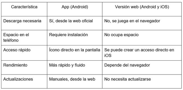 Si tienes Android, puedes descargar la app para una mejor experiencia. Si usas iPhone, puedes jugar desde el navegador y guardar un acceso directo en tu pantalla.