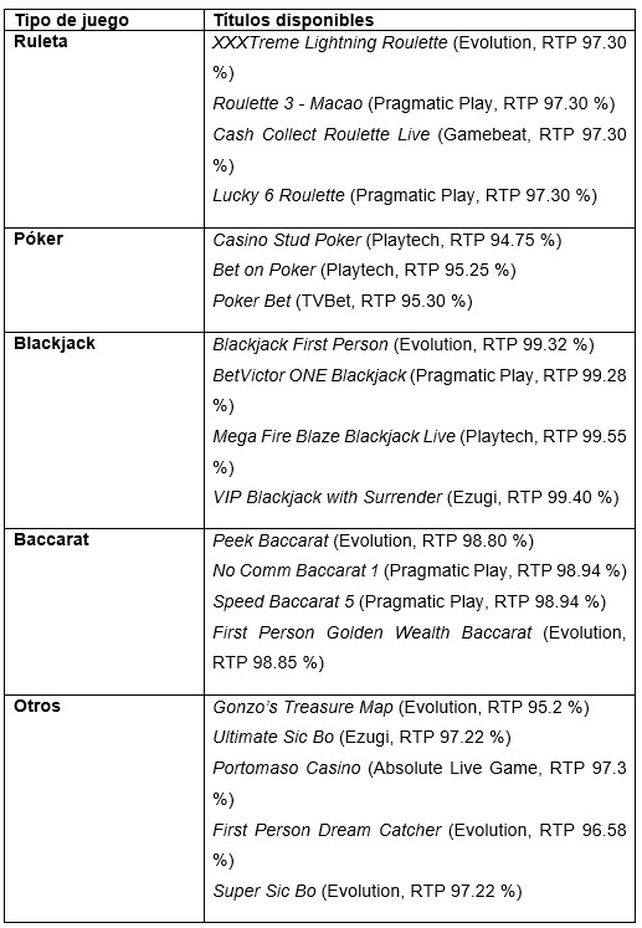 - Las tasas de retorno al jugador de estas dinámicas suelen ser elevadas. Si el cliente selecciona juegos como la ruleta europea o el blackjack, el RTP supera el 97%;