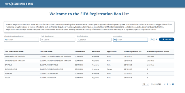 El comienzo de semana no trajo las noticias que esperaba Colón. Según el reporte actualizado de la FIFA, el club santafesino mantiene activa la inhibición correspondiente al paraguayo Alberto Espínola, la única que todavía figura en el registro internacional tras haberse levantado semanas atrás la sanción impuesta por el caso del uruguayo José Neris.