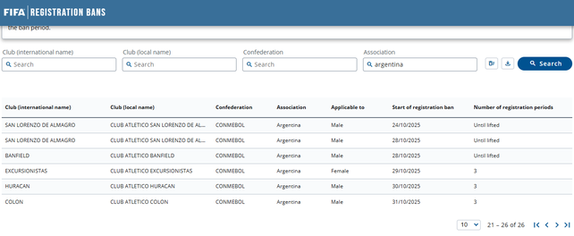 El inicio de la semana trajo un pequeño alivio para Colón, que este martes 4 de noviembre aparece en el registro oficial de FIFA con una inhibición menos. El club santafesino había sido notificado semanas atrás por dos sanciones internacionales, pero una de ellas —la que correspondía a River Plate de Uruguay, por el pase de José Neris— fue finalmente levantada.