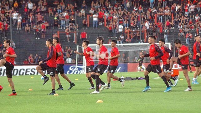 El calor de este otoño, con el sol pegando de lleno en el Brigadier López fue el escenario ideal para que se crucen cánticos, mientras los jugadores de Colón ingresaron al terreno de juego para realizar los ejercicios preliminares.