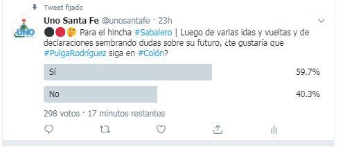 Por este motivo, y por la incertidumbre tan grande que hay en el mundo Colón sobre su continuidad, UNO Santa Fe realizó una encuesta en sus redes sociales, donde como resultado arrojó que cuatro de cada 10 hinchas sabaleros no quieren volver a verlo con la rojinegra.