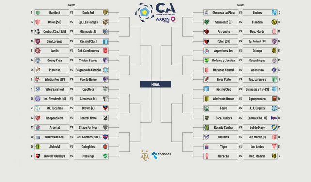 Mientras que si logra llegar a los octavos de final de la Copa Argentina, como rivales más calificados Colón podría tener a Gimnasia de La Plata (chocará con Liniers) y Sarmiento de Junín (enfrentará a Flandria).