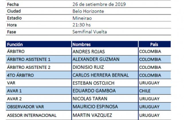 Colón ya conoce los encargados de impartir justicia para el trascendental partido revancha que afrontará el jueves 26 de setiembre ante un Mineirao que estará repleto de torcedores galos.