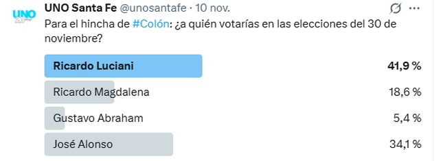 A menos de tres semanas de las elecciones en Colón, el termómetro electoral empieza a tomar temperatura. UNO Santa Fe realizó una encuesta abierta entre los hinchas sabaleros para medir la intención de voto de cara a los comicios del próximo 30 de noviembre, donde se definirá el futuro institucional del club.