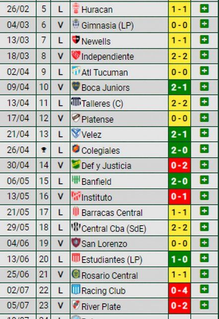 Pero también su campaña se caracterizó por pocas victorias, pocas derrotas pero muchísimos empates. De hecho, es el equipo de todos los que componen la Liga Profesional que más igualdades cosechó, cuando restan cuatro fechas para el final del mismo.