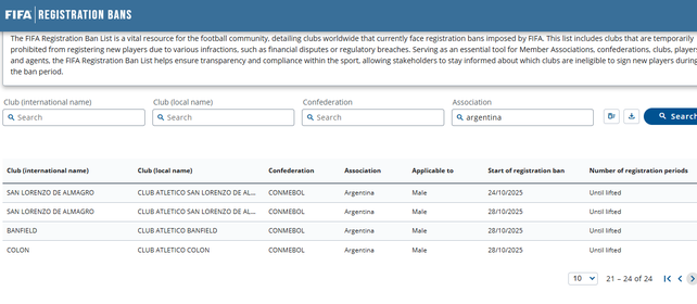 Finalmente, lo que en el entorno de Colón intentaban evitar ocurrió: el club fue oficialmente inhibido por la FIFA a raíz del reclamo del defensor paraguayo Alberto Espínola, quien exige el pago de una deuda que supera los 375.000 dólares más 12 millones de pesos, además de los intereses establecidos en el fallo del Tribunal Arbitral del Deporte (TAS).