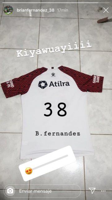 En esta oportunidad subió una historia donde se puede observar claramente la camiseta suplente de Colón (la que utilizó en la histórica semifinal de la Sudamericana ante Atlético Mineiro en Belo Horizonte), con un improvisado diseño digital con el número 38 (sería el que usaría en el club, con la firma B. fernandez.