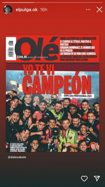 Incluso, en redes sociales se hizo captura de esa publicación y se le dio el sentido de cargada para Unión, ya que nada hacía prever que Pulga Rodríguez realizaría el lunes una publicación alusiva al título de Colón, y sobre todo luego de la eliminación del equipo de Gustavo Munúa.