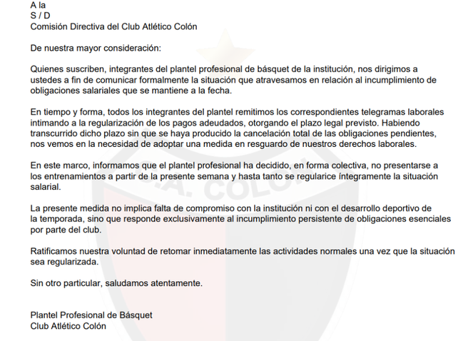 El plantel de Colón decidió no practicar hasta no cobrar la deuda, que se suma a problemas internos y de logística en la Liga Argentina que complican todo