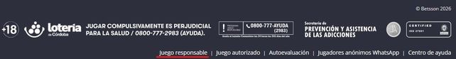 También es importante verificar la presencia visible del logo de la Lotería de Córdoba dentro del sitio, generalmente en el pie de página. Este elemento confirma que el operador se encuentra bajo control del ente regulador provincial.
