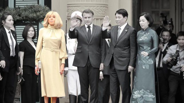 La imagen que captaron las cámaras de televisión y los fotógrafos ya dieron varias veces la vuelta al mundo. Son tan sorprendentes y difíciles de explicar que sorprendieron a todo el mundo. Emmanuel Macron, el primero. Cuando el avión que llevó hasta Vietnam al matrimonio, en un viaje oficial, abrió la puerta principal, la escena pareció de una película picaresca. El presidente francés se vuelve sobre su paso y de pronto recibe un golpe, un arañazo o un empujón con dos manos. Enseguida se ve que pertenecen a la primera dama, Brigitte Macron.