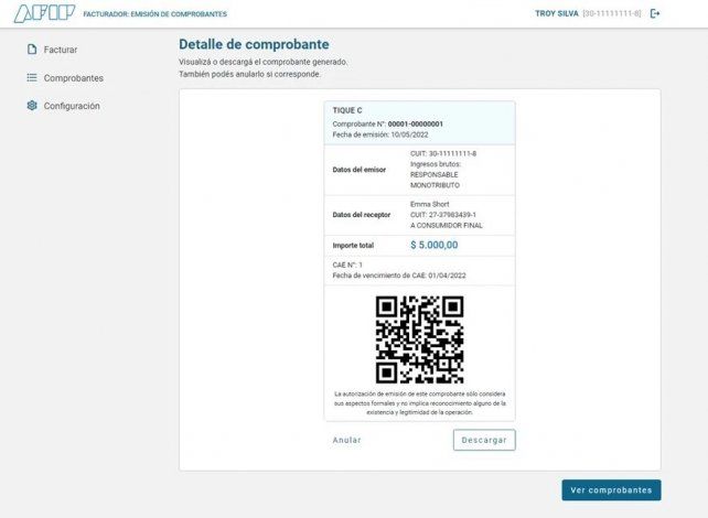 El servicio, que podrá utilizarse a partir de este miércoles desde el sitio de la Afip permite guardar y consultar el historial de los comprobantes emitidos, así como también compartirlos por mensajería instantánea y correo electrónico. La herramienta contará con mayores medidas de seguridad y sesiones de logueo más extensas. Además, permitirá emitir comprobantes en nombre de terceros.