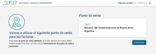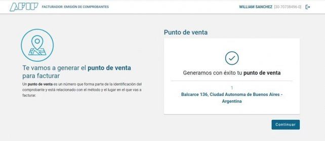 En caso de tener un punto de venta ya creado, el sistema lo utilizará para el facturador. Verificar que los datos sean correctos y presionar CONTINUAR.