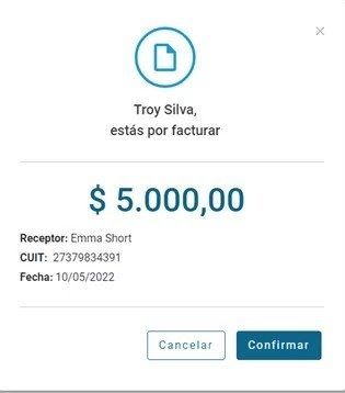 En el menú lateral, seleccionar la opción FACTURAR. A continuación, colocar el monto de la operación. En caso de que el monto del comprobante supere los $15.795,00 se deberá identificar al comprador. Luego, presionar FACTURAR.