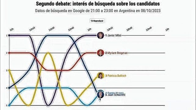 Durante el bloque de preguntas cruzadas en Google se registraron preguntas como quién gana el debate, cuántos argentinos somos, de qué partido es Schiaretti y qué es el socialismo. Por último, durante el cierre las búsquedas apuntaron a saber cuándo sería el balotaje y cuándo se vota presidente en Argentina, entre otras.