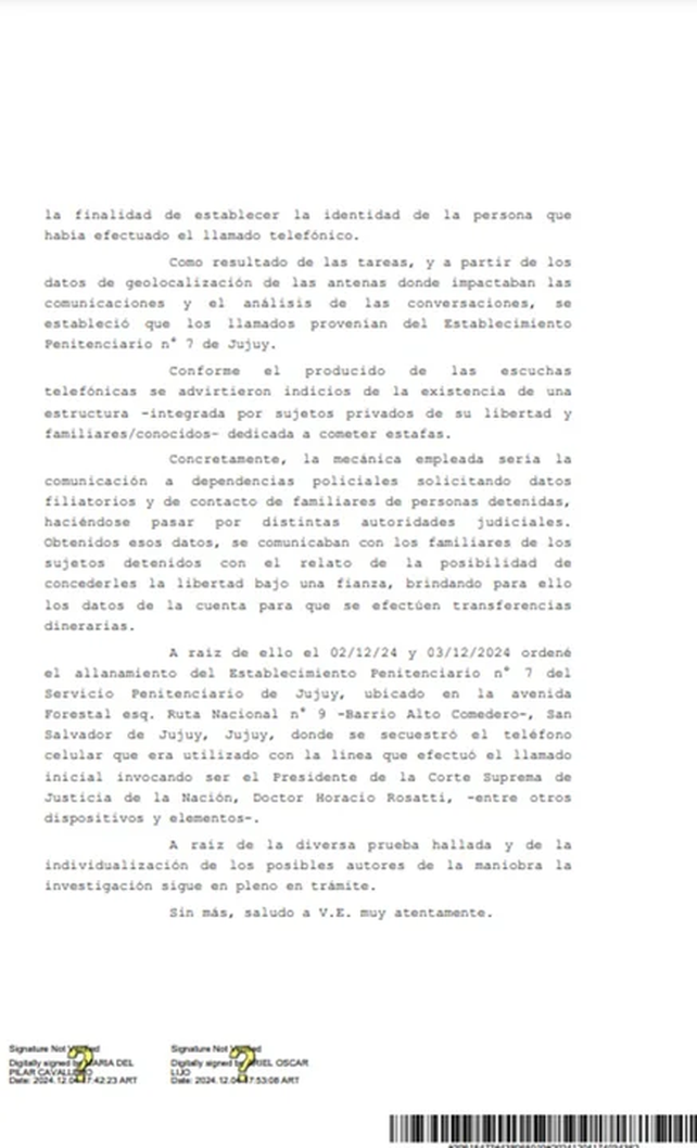 Entre los imputados en una causa relacionada, figuran agentes de inteligencia y exfuncionarios. Además, en 2023, Rosatti denunció la aparición de líneas telefónicas a su nombre y la de otros altos funcionarios judiciales.