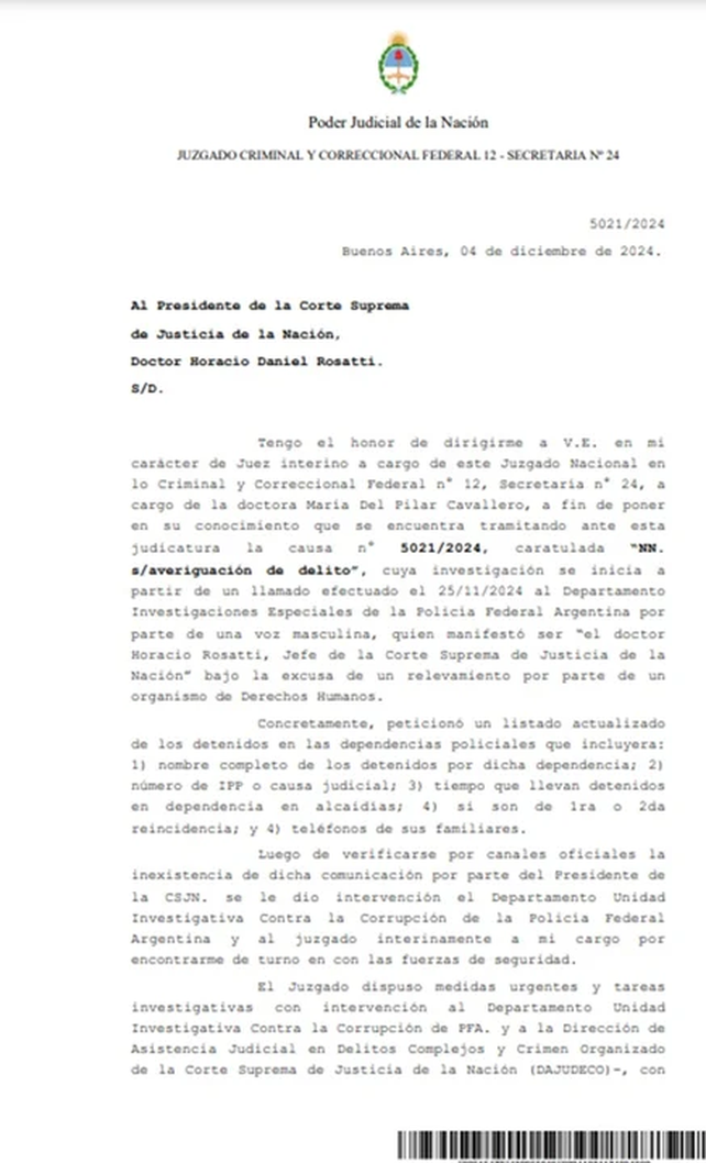 Una serie de llamadas a comisarías de todo el país haciéndose pasar por el presidente de la Corte Suprema, Horacio Rosatti, encendió las alarmas de las fuerzas de seguridad y la justicia federal.