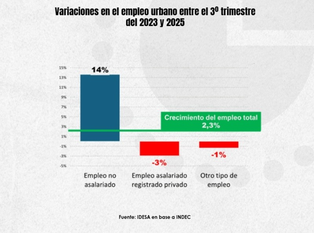 Durante los años previos a 2025, el presidente de Idesa apuntó que lo que hubo fue un “aumento del cuentapropismo mediante el monotributo”, una tendencia que luego dio un viraje hacia la informalidad.