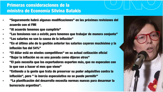 En cuanto a las razones de la inflación, Batakis tuvo una mención especial al calificativo de "multicausal", utilizado recurrentemente e incluso incorporado en los documentos del FMI.