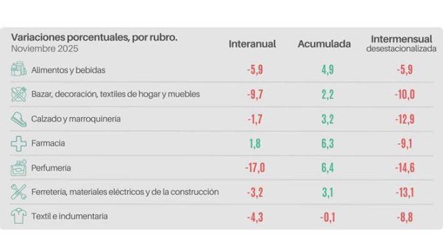 A pesar de la contracción de noviembre, el acumulado anual todavía se mantiene en terreno positivo, con un incremento de 3,4% en lo que va de 2025. Sin embargo, la tendencia negativa del penúltimo mes del año encendió las alarmas en el sector.