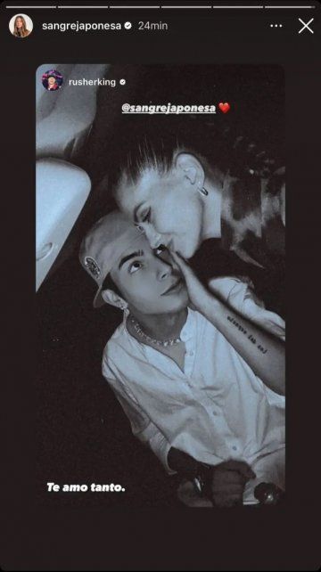 Tras un tiempo sin poder verse, abrazarse y darse mucho cariño, se han visto de nuevo en Buenos Aires y no dudaron en compartir el tierno momento a través de las redes sociales. “Te amo tanto”, escribió Rusherking. La fotografía es en blanco y negro y se aprecia a los tortolitos mirándose muy cómplices en el interior de un auto.