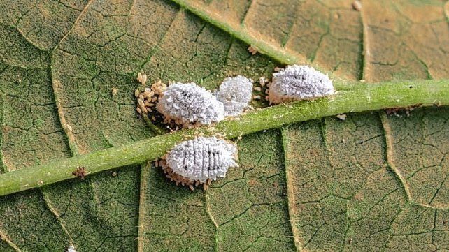 Una de las plagas más comunes son las cochinillas algodonosas. Este pequeño insecto tiene una apariencia similar a bolitas de algodón, con forma de óvalo y cubierta por una sustancia blanca o amarilla. Este bicho puede ser un verdadero problema ya que debilita y facilita la aparición de hongos y virus en todas las plantas.