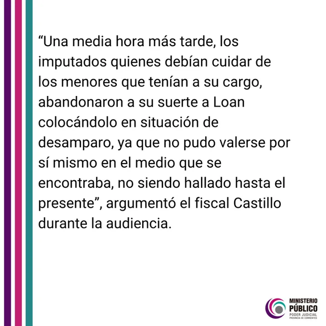 Para el Fiscal los tres son responsables por descuido del niño, quien hoy está desaparecido desde el jueves pasado en un campo de la localidad de 9 de julio en la provincia de Corrientes .
