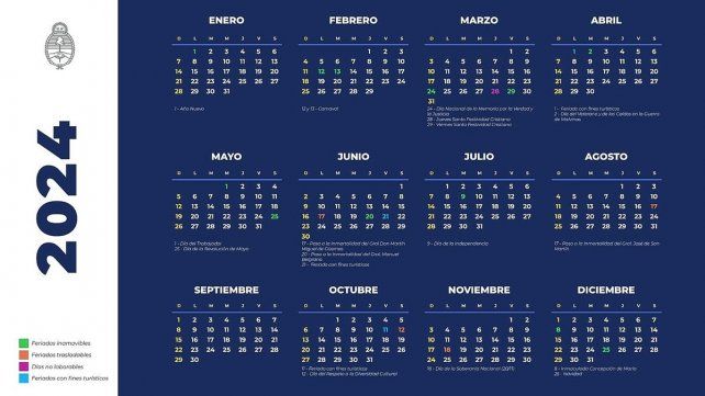 En el cronograma 2024 establecido por el Poder Ejecutivo el próximo feriado que se viene es el 24 de marzo, el Día Nacional de la Memoria por la Verdad y Justicia que rinde homenaje a los desaparecidos y las víctimas de la última dictadura militar, aunque cae domingo y no se arma un fin de semana largo.