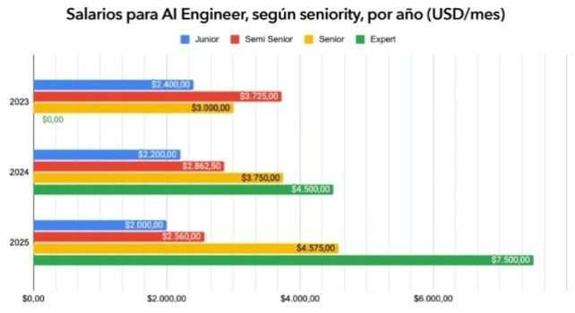 Un ingeniero experto en IA puede alcanzar salarios superiores a los USD 7.000 mensuales.