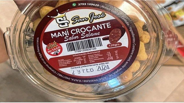 Y el producto Maní Crocante original, marca San José, RNE 04004008, RNPA 04077982, con logo sin TACC en cualquier presentación, lote y fecha de vencimiento, por carecer de registros de establecimiento y producto, por estar falsamente rotulados al consignar en su rótulo un RNE inexistente y un RNPA perteneciente a otro producto, y por consignar el símbolo Sin TACC sin contar con la autorización correspondiente para tal atributo, resultando ser en consecuencia ilegales”.