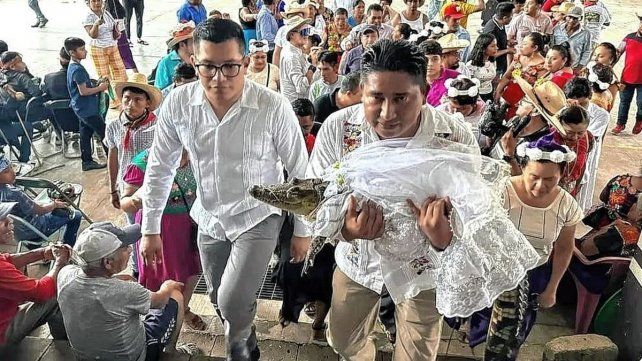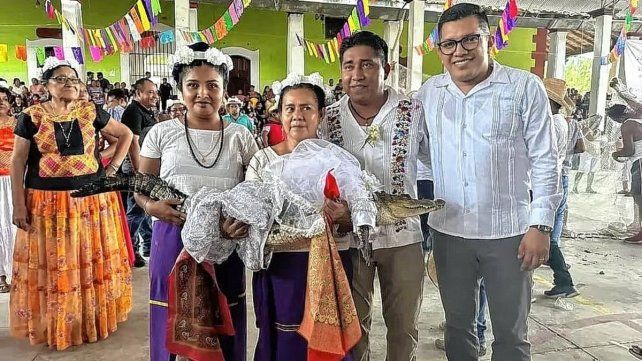 En medio de aplausos, bailes y un beso que estuvo cargado de buenos deseos, el alcalde de San Pedro Huamelula en el estado de Oaxaca en México, contrajo matrimonio con un caimán hembra en medio del cumplimiento de un ritual tradicional, con el fin de pedir prosperidad y abundancia para toda su comunidad.