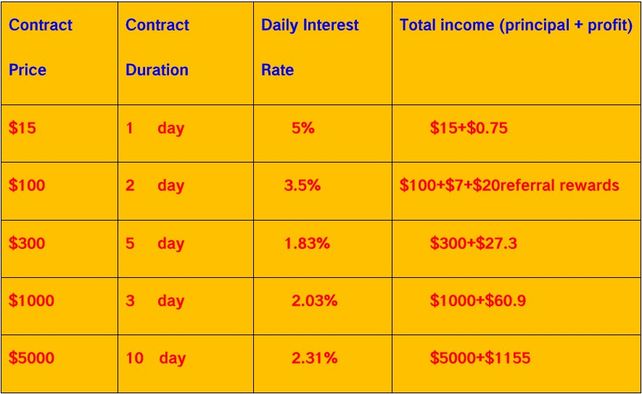 3 El período de validez del contrato es fijo, los ingresos se liquidan cada 24 horas y el capital del contrato se devolverá después de que el contrato expire.