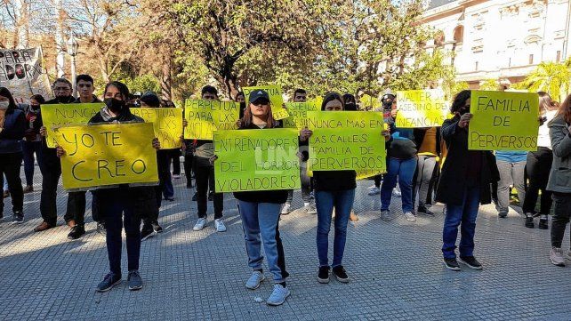 Hubo grandes carteles amarillos con el pedido de justicia, "con lxs niñxs no", "basta de abusos sexuales infantiles". Asimismo se publicó en los mismos los nombres, apellidos y fotos de los imputados y de sus conviviente. La audiencia de prisión preventiva y de ampliación de la imputación duró cerca de tres horas.