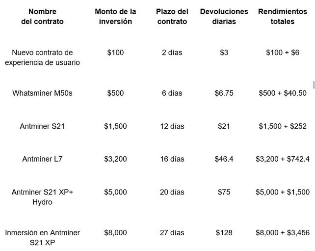 2. Seleccione un contrato de minería que coincida con su preferencia de capital y horizonte temporal.