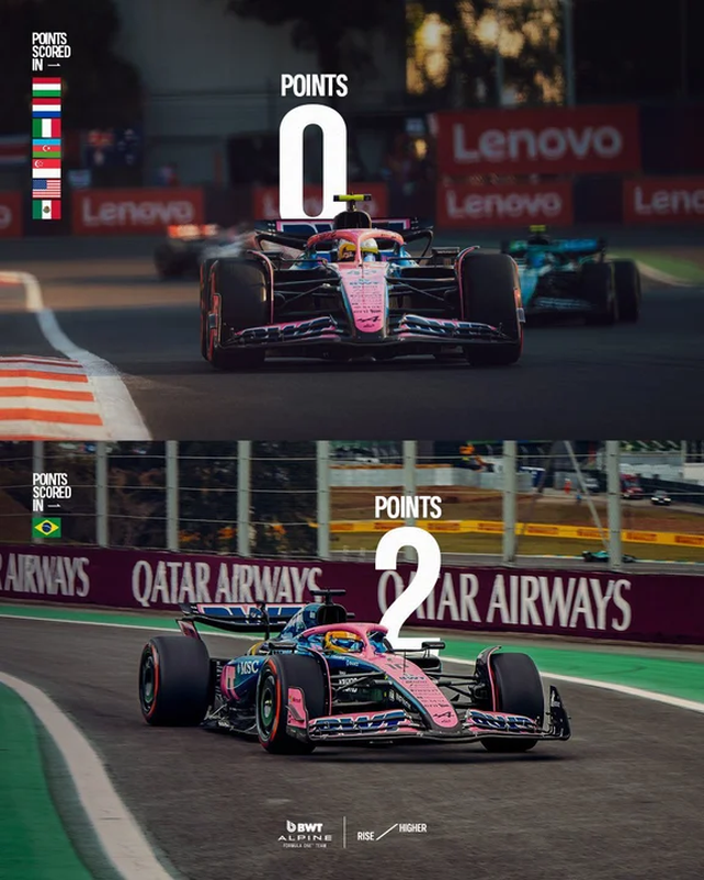 En el posteo, Alpine hacía énfasis en los dos puntos conseguidos por el francés Pierre Gasly, quien sumó uno por terminar octavo en la sprint y otro por finalizar décimo en la principal.