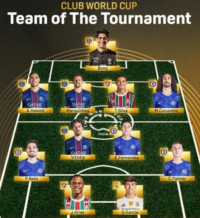 La FIFA dio a conocer cuáles son los jugadores que tienen el privilegio de integrar el once ideal del Mundial de Clubes y, aunque hay mayoría de jugadores del Chelsea, solo hay un inglés. La formación elegida fue un 4-4-2 donde seleccionaron a cuatro jugadores sudamericanos.