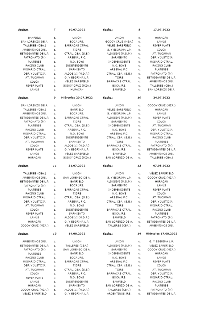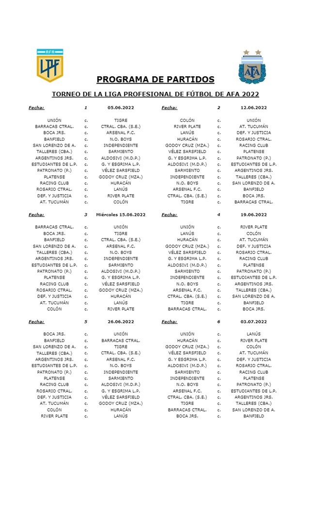 La Liga Profesional comenzará el fin de semana del domingo 5 de junio, solo con un fin de semana de receso entre un torneo y otro. Habrá seis fechas que se jugarán entresemana, ya que los fines de semana entre el 5 de junio y 23 de octubre no llegan a cubrir el total de las 27 jornadas.