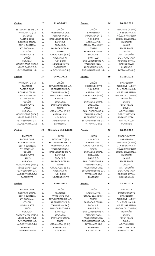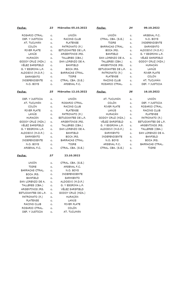 Respecto al inicio, Colón había gestionado para jugar de Colón el día del aniversario (5 de mayo), pero no tuvo efecto y le tocará hacerlo como visitante ante Atlético Tucumán. Mientras que Unión arrancará en el 15 de Abril frente a Tigre, finalista de la última Copa de la Liga Profesional.