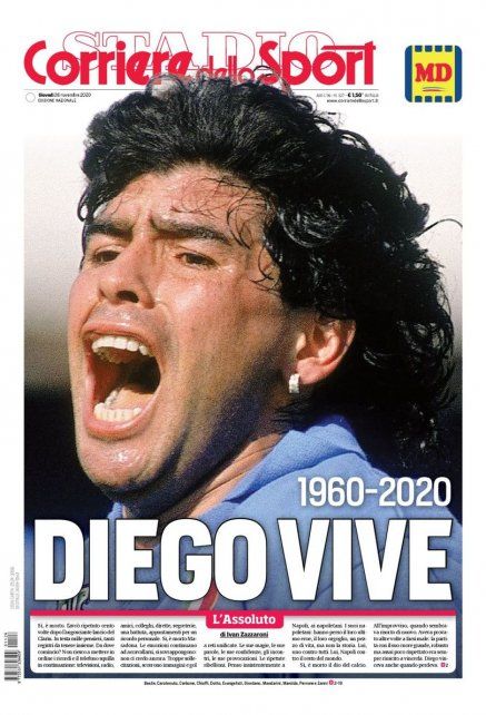 Más escueto, el Corriere dello Sport muestra en letras enormes el título: "Maradona, el Absoluto".