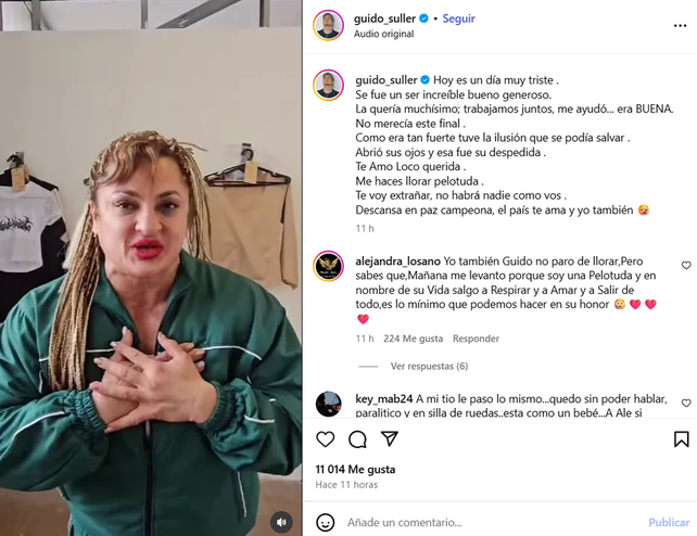 El mediático Guido Süller le dedicó unas dulces palabras a la Locomotora y manifestó su tristeza ante la situación: "Hoy es un día muy triste. Se fue un ser increíble, bueno, generoso. La quería muchísimo; trabajamos juntos, me ayudó... era BUENA. No merecía este final. Como era tan fuerte tuve la ilusión que se podía salvar. Abrió sus ojos y esa fue su despedida. Te Amo Loco querida. Me haces llorar pelotuda. Te voy extrañar, no habrá nadie como vos. Descansa en paz campeona, el país te ama y yo también ".