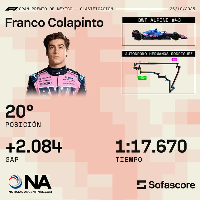 Con la nueva la chance para Franco Colapinto en Alpine, este fin de semana regresa la Fórmula 1 con el Gran Premio de México, que este domingo tiene su carrera.