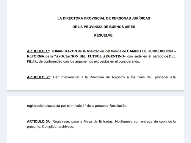 La Dirección Provincial de Personas Jurídicas confirmó el cambio de domicilio legal de la Asociación del Fútbol Argentino, que pasará a quedar formalmente bajo jurisdicción bonaerense. La decisión reconfigura el encuadre administrativo de la entidad en un escenario atravesado por tensiones con organismos de fiscalización nacionales.
