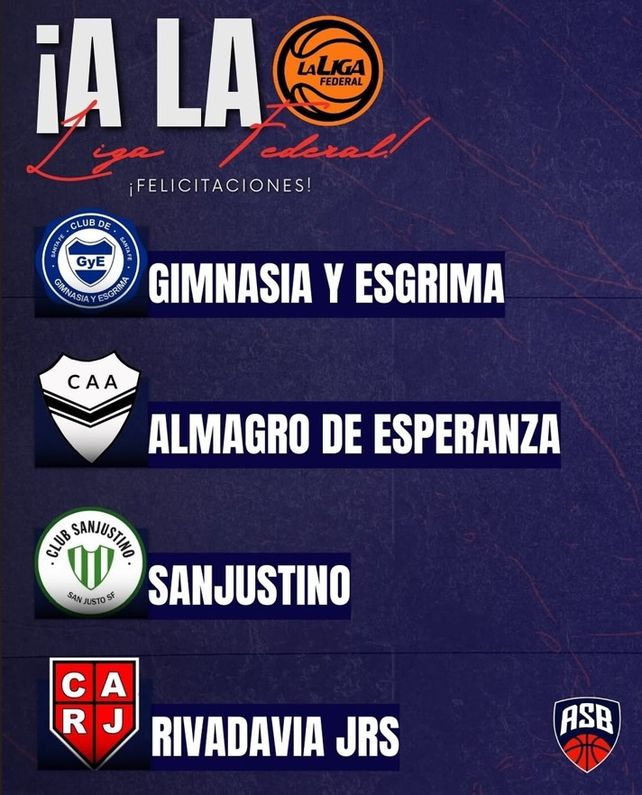 En sus rede sociales, la ASB ratificó lo que era un secreto a voces: Gimnasia, Almagro, Sanjustino y Rivadavia serán parte de la Liga Federal 2025