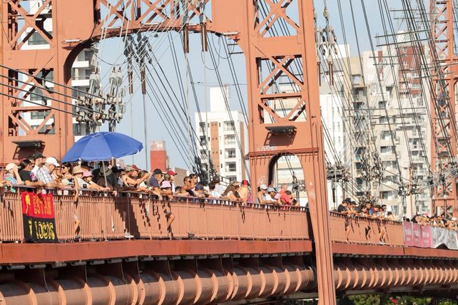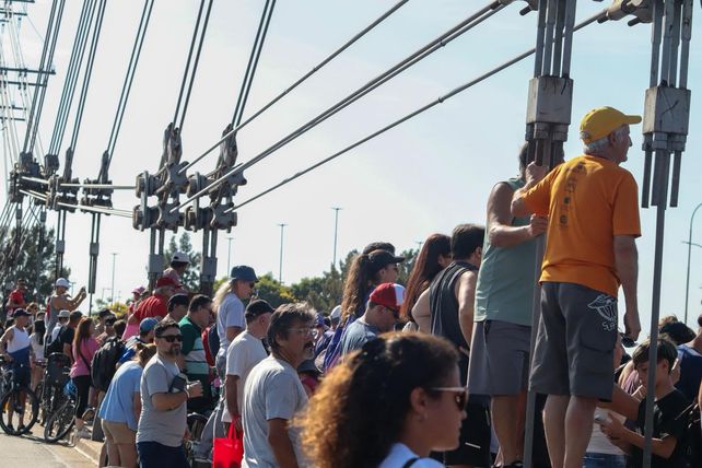Los chicos juegan cerca del agua, los vendedores ambulantes recorren la costa y los fotógrafos buscan capturar esa imagen perfecta donde el río, el cielo y el esfuerzo humano se mezclan en un mismo encuadre.
