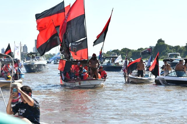 A lo largo del recorrido, el color no se detiene. Lanchas, kayaks y embarcaciones de apoyo siguen de cerca a los nadadores, generando una caravana flotante que avanza al ritmo de las brazadas. Desde allí se ven escenas únicas: brazos que cortan el agua, entrenadores que gritan indicaciones, banderas que flamean desde las proas.