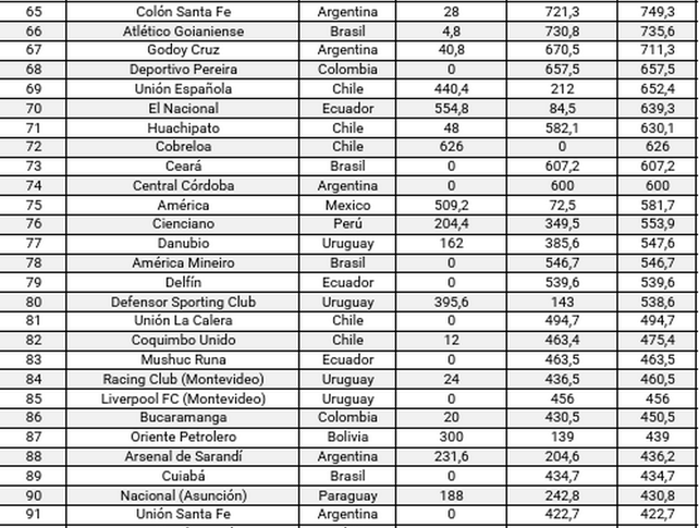 Unión, en tanto, aparece en el puesto 91 del escalafón. El Tatengue paga en la tabla la irregularidad de sus participaciones internacionales y la falta de recorridos profundos en torneos Conmebol, más allá de haber logrado clasificaciones en los últimos años. El dato no sorprende, pero sí marca el camino a recorrer si el club aspira a consolidarse con mayor peso en el escenario continental.