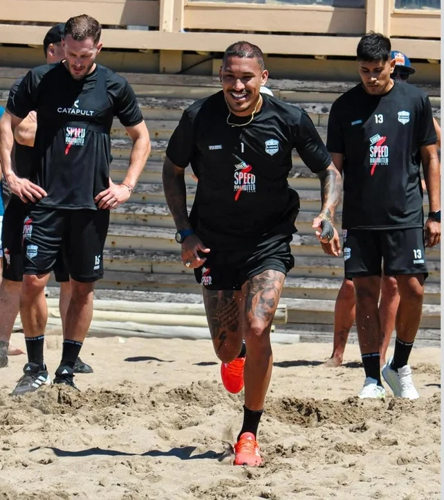 Dentro de esa misma lógica, parte de la preparación incluyó ejercicios con pelota en modalidad de fútbol playa. Allí, Arce combinó diversión y competencia junto a sus compañeros, en prácticas que no solo suman desde lo físico, sino que también aportan a la técnica individual y al control corporal en superficies inestables. Lejos de ser solo un entrenamiento recreativo, este tipo de tareas forma parte de una planificación integral pensada para llegar en óptimas condiciones al inicio del torneo.